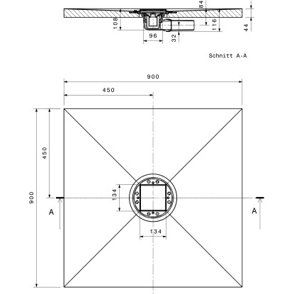 Indigno P verfĂŒgt ĂŒber einen mittigen Punktablauf, der mit einem hochwertigen Edelstahlrost abgedeckt wird. Ebenfalls im Lieferumfang enthalten ist ein waagerechter Ablauf mit normgerechtem Ablaufstutzen DN 50.