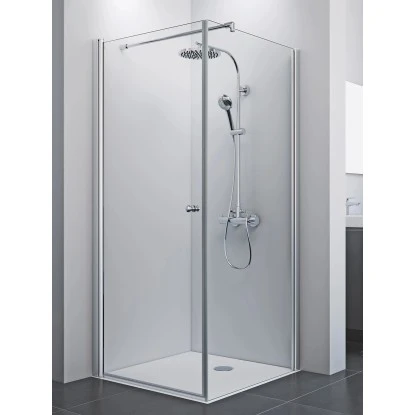 Die Breuer Drehtür für Seitenwände ist aus 8 mm Einscheibensicherheitsglas gefertigt und die ideale Kombination aus modernem Konstruktions Know-How, Design und Reinigungsfreundlichkeit. Der 4-fach Hebe-Senkmechanismus steht für leichtes Öffnen und Schließen der Türen. Da sich die Türen sowohl nach innen, als auch nach außen öffnen lassen ist die Drehtür auch für kleine Bäder geeignet.