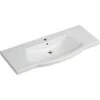 Der charakteristische Beckenrand geht in eine Hahnlochbank über, auf der Platz für Seife oder Deko ist. Mit bereits integriertem Überlauf, Überlaufclip in Chrom und Hahnloch lässt das Waschbecken keine Wünsche mehr offen.
