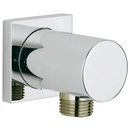 Der Rainshower Wandanschlussbogen verfĂŒgt ĂŒber ein AuĂengewinde und eine eckige Rosette. Er ist eigensicher gegen rĂŒckflieĂendes Wasser.