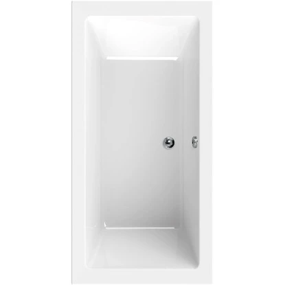 Die puristische Designwanne hat einen Mittelablauf, so liegt es sich auch zu zweit bequem. Durch die extra Tiefe dieser symmetrischen Wanne bleiben auch bei großen Planschern die Knie warm.