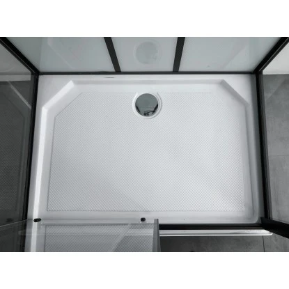 Die moderne Sanotechnik Komplettduschkabine Sky 3 CL75 ĂŒberzeugt durch das ausgefallene Design im Schwarz-WeiĂ Look und ist ein absoluter Blickfang in Ihrem Badezimmer. Ein optisches Highlight ist vor allem das edle Glasdach der Duschkabine. Diese Dusche ermöglicht ein unvergessliches Duscherlebnis und lĂ€sst Sie Ihre Alltagssorgen vergessen. Die groĂflĂ€chigen MassagedĂŒsen sorgen fĂŒr die ideale Entspannung nach einem stressigen Tag. Zudem ist die Dusche mit einer Ăberkopfbrause sowie mit einer verstellbaren Handbrause mit 3 Funktionen ausgestattet. Mit Hilfe des Einhebelmischers können Sie bequem zwischen den beiden Brausen umschalten. Auf der integrierten Glasablage ist auĂerdem Platz fĂŒr Ihre Duschutensilien. Dank des Quick Line Montagesystems wird ein schneller und leichter Aufbau der Duschkabine garantiert.
