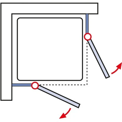 Die zwei nach auĂen öffnenden DrehtĂŒren sind mit eleganten Aluminiumprofilen an den feststehenden Seitenteilen befestigt, sodass ein komfortabler Einstieg in den Duschbereich ermöglicht wird. Auch die formschönen StabilisationsbĂŒgel folgen dem Design der Profile und erstrahlen in Alu Natur. Sie gewĂ€hrleisten zudem einen sicheren Stand der Duschkabine.