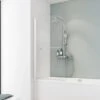 Der einteilige Schulte Badewannenaufsatz dient dazu, die Duscheinheit optisch von der Badewanne zu trennen und sie somit komfortabel in eine Duschkabine umzuwandeln. Der Aufsatz hat die Maße 140 cm x 80 cm. Er besteht aus klarem 5-mm-starkem Einscheiben-Sicherheitsglas und einem Profil in Weiß. Die auf dem Glas angebrachten Querstreifen dienen zur Dekoration und bieten gleichzeitig Sichtschutz. Das Glaselement ist beidseitig innen und außen 90° schwenkbar, wodurch es besonders platzsparend ist.